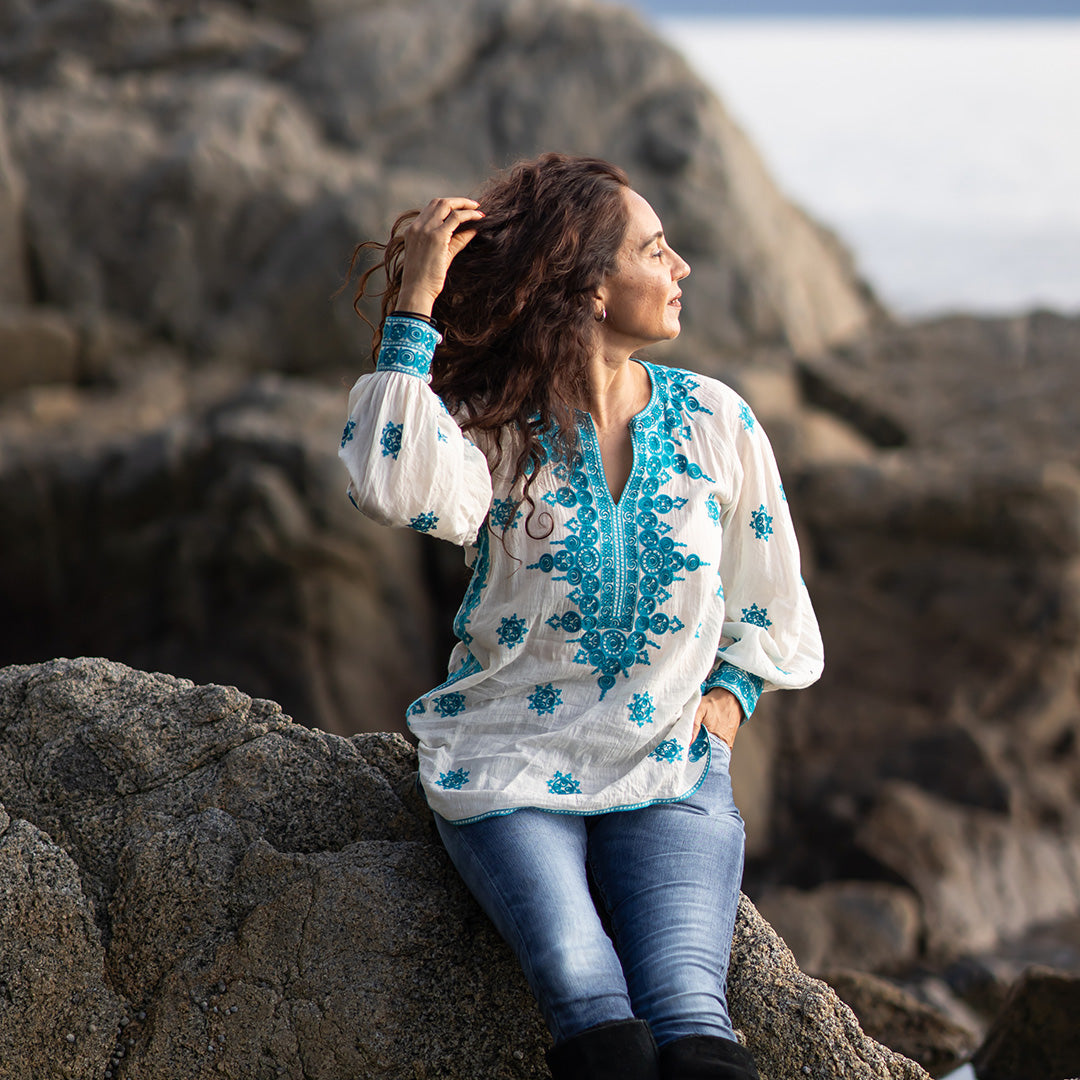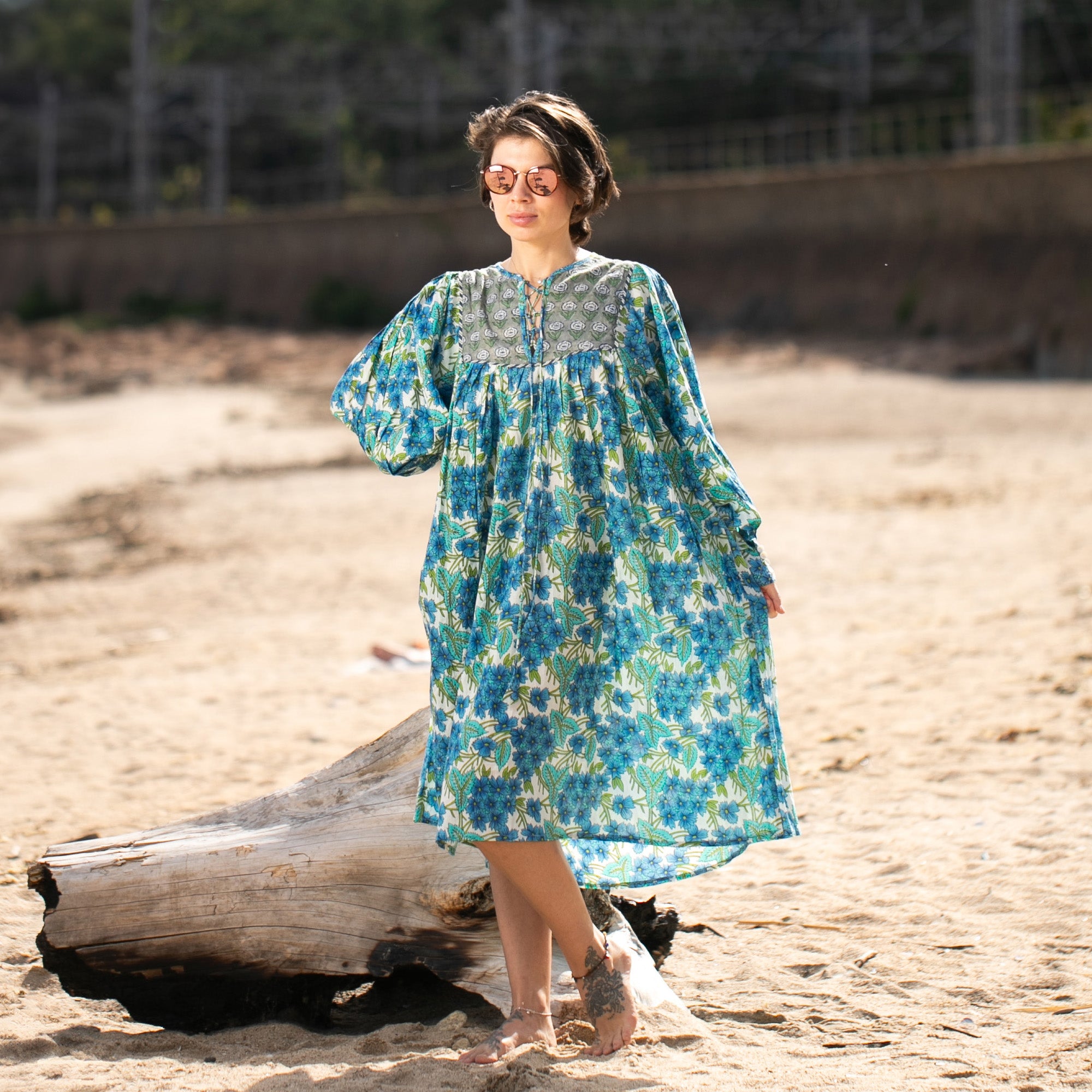 大量生産のファストファッションと機械に囲まれた今の時代に、あえて歴史あるインドのブロックプリントを用い、持続可能でエシカルな方法で取り組んでいます。こういった私達の洋服を気に入っていただけることを心から願っています。